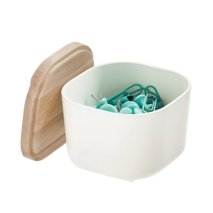 Ask med trälock, fyrkantig, ECO SMALL COMPACT BIN, 9 x 9 x H 7 cm, Offwhite / Natur