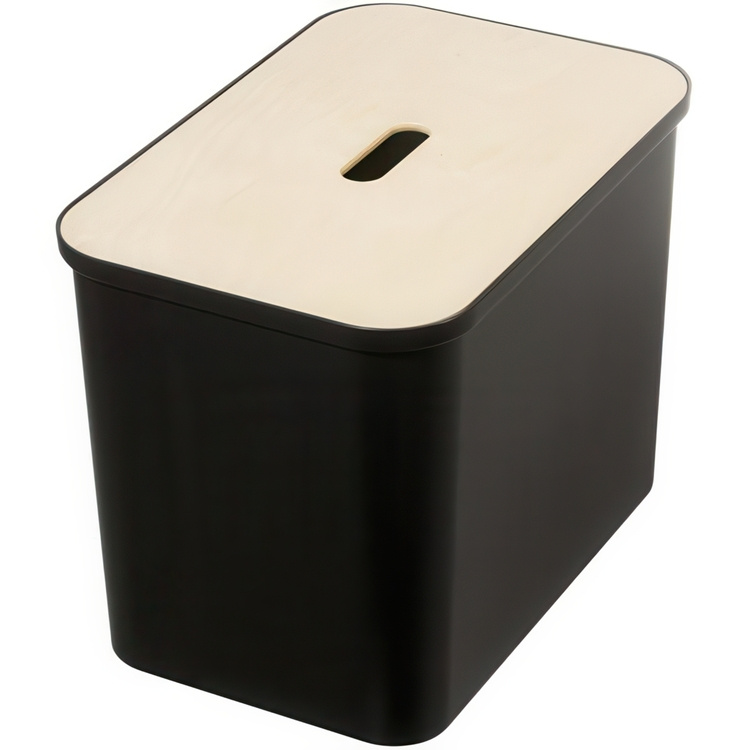 Artnr: 43252 Lagersaldo: 0 Bredd: 57.0 Djup: 38.0 Höjd: 42.0 Material: Återvunnen plast / Trä Volym: 90972.0 Färg: Svart med lock i trä , Vit med lock i trä