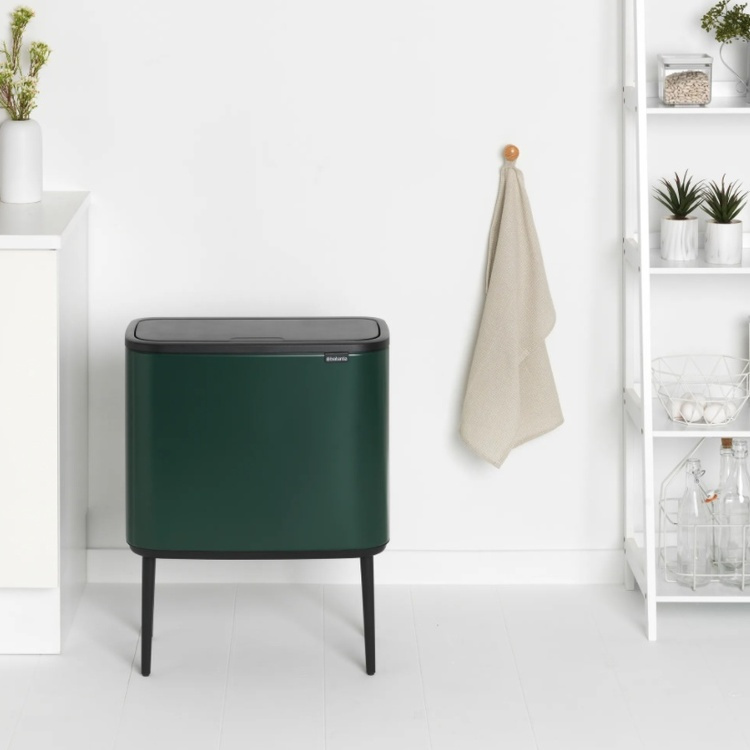 Återvinningsstation på ben, 2 insatser, BRABANTIA BO TOUCH 23 + 11 L, Pine Green