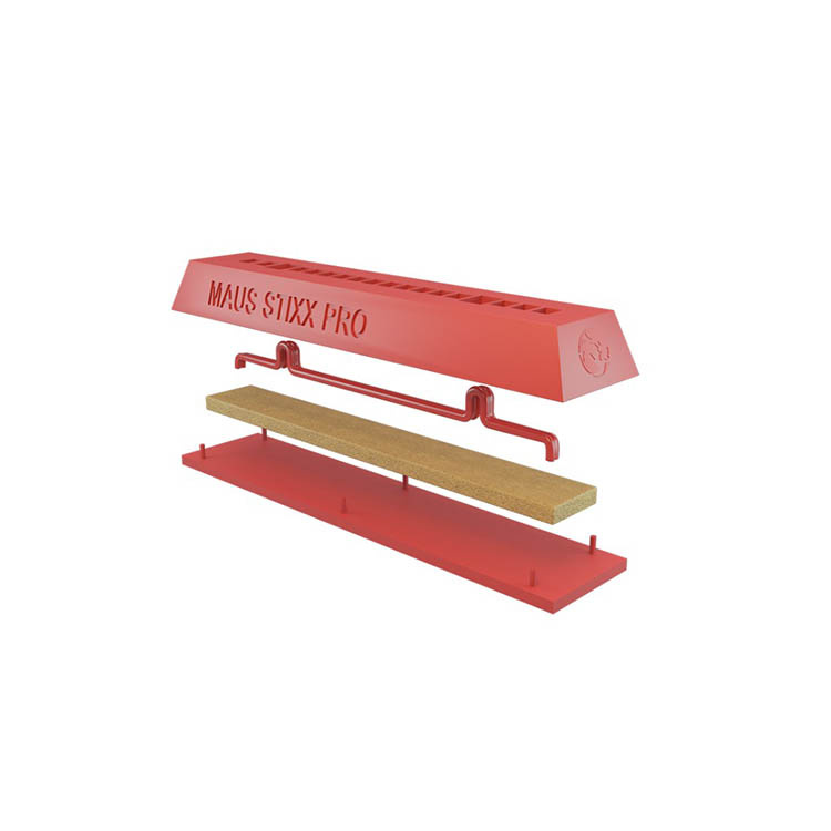 MAUS Stixx Pro har en självhäftande baksida och monteras direkt i det utrymme som ska skyddas. Den kompakta storleken om 9,8 x 1 x 1,8 cm gör att den enkelt får plats även i trånga utrymmen där traditionella brandskyddslösningar inte ryms. Den fungerar helt fristående och kräver varken strömförsörjning, trycksatta behållare eller kabeldragning.