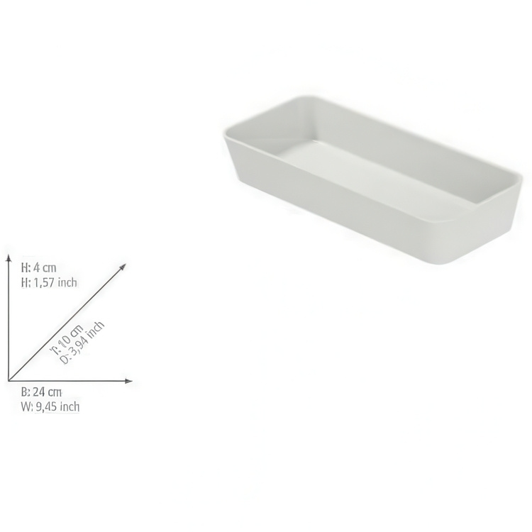 Avlång förvaringsbricka / lådinsats, GOM SOFT TOUCH, 24 x 10 x H 4 cm, Vit