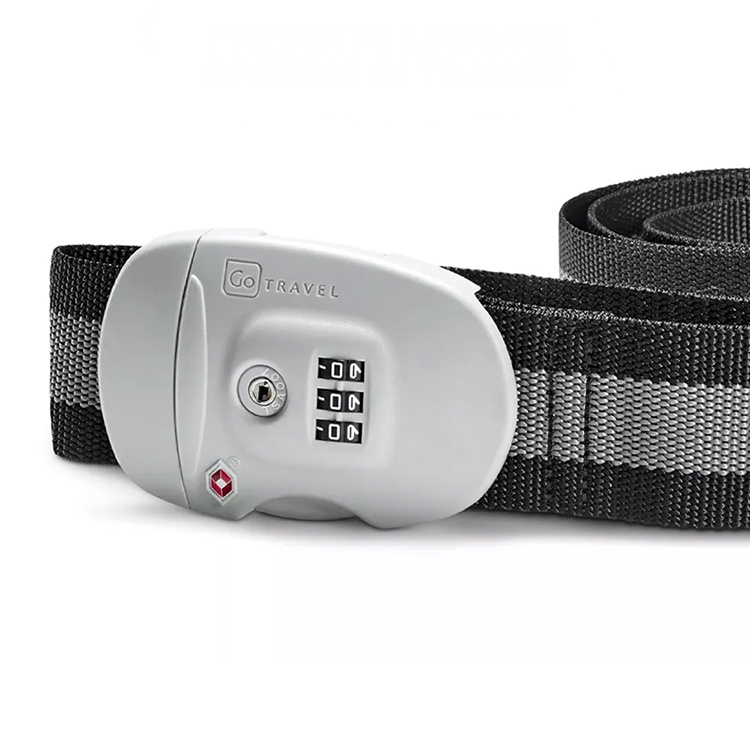 Bagagerem från Go Travel med justerbar längd och integrerat kodlås för en säkrare resa. Den justerbara längden på upp till 1,7 meter gör att den passar både mindre kabinväskor och större resväskor. Det tresiffriga kodlåset är enkelt att använda och är TSA-godkänt, vilket gör att det kan öppnas vid säkerhetskontroller utan att skadas.