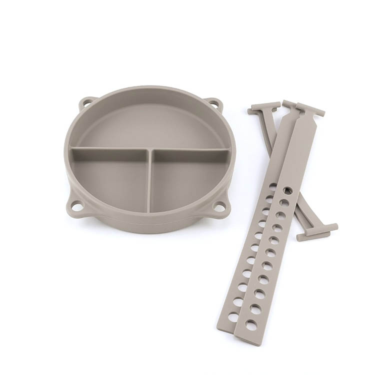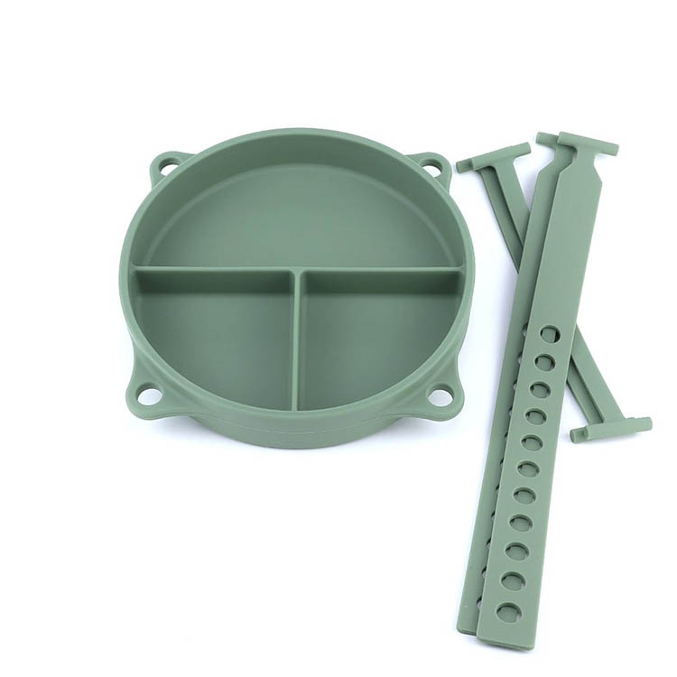 Barntallrik i silikon med sugpropp och fyra fästen är en stabil och praktisk lösning för barn som lär sig äta själva. Den kraftiga sugproppen i kombination med de fyra fästpunkterna håller tallriken säkert på plats under hela måltiden, vilket minskar risken för spill och kladd. Tallriken är tillverkad av tålig och livsmedelssäker silikon och har tre uppdelade fack som gör det enkelt att servera olika typer av mat. Barntallriken har en universal passform för barnstolar med brickor.