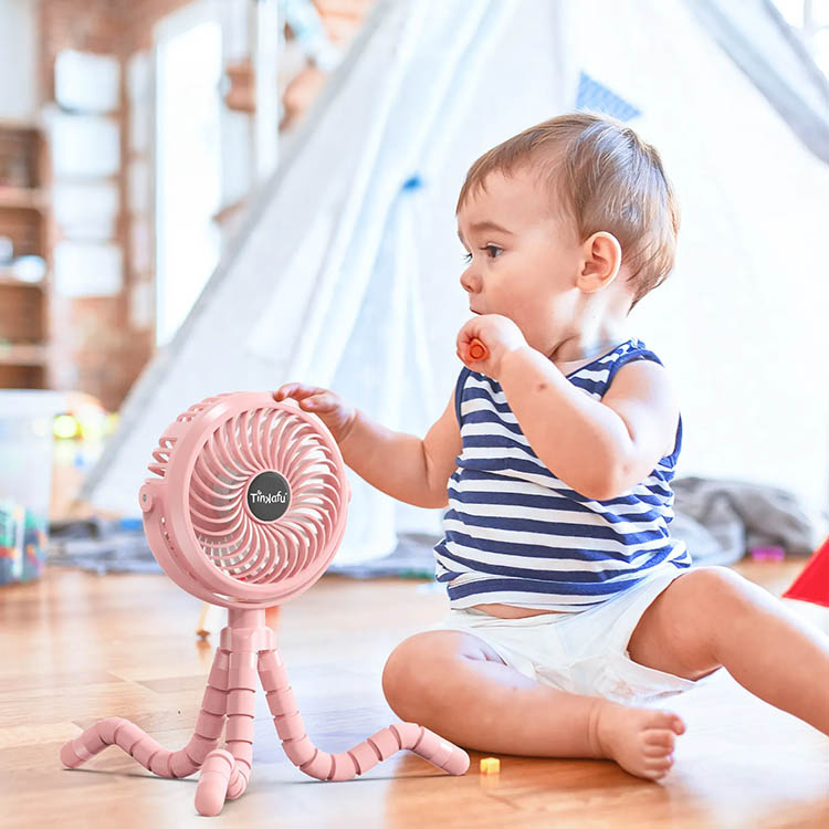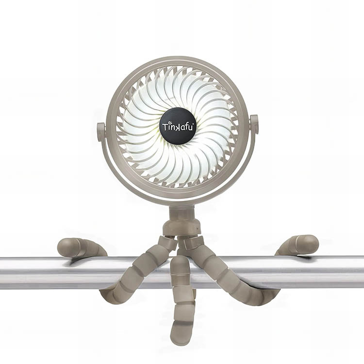 De karakteristiska "tentakelbenen" gör det möjligt att montera fläkten nästan var som helst. Du kan exempelvis fästa den på singel- eller syskonvagnar, spjälsängen, nattduksbordet eller i bilen under sommarens varmaste dagar. Benen är 20 cm långa och ger stabilitet oavsett underlag. Fläkten har även ett tätt skyddsgaller som gör att små fingrar inte kan nå fläktbladen. Detta gör att du tryggt kan använda den nära barn utan risk för skador.