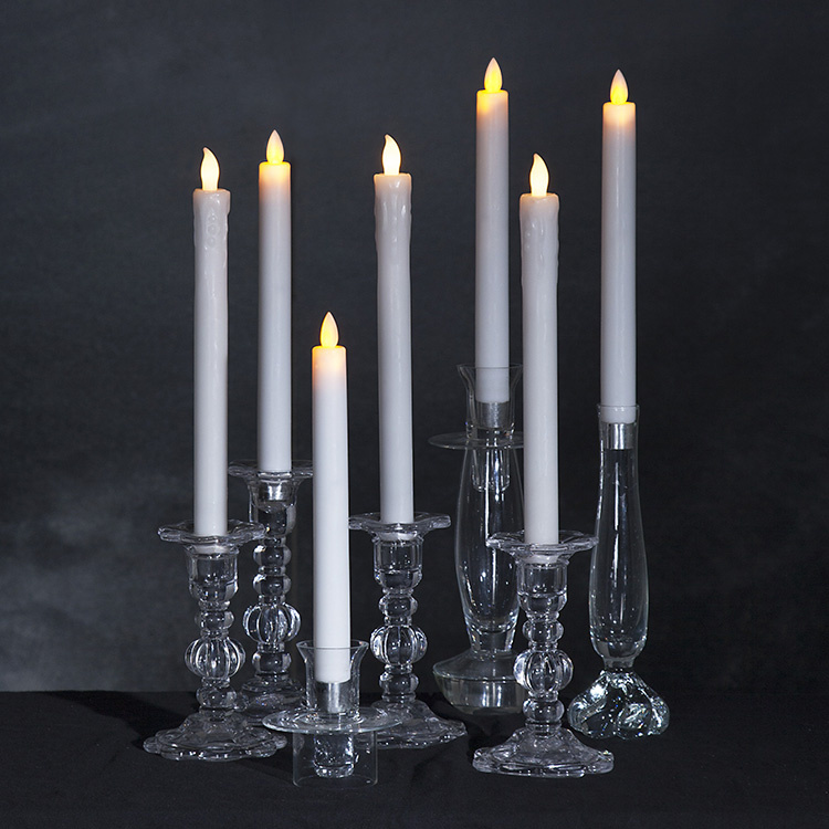 Ljusen lyser med ett fint varmvitt sken i fönstret och på matbordet. Ljusen är mycket enkla att använda och med ett litet tryck på lågan tänder du den energisnåla LED-lampan. Stearinljusen passar i vanliga ljusstakar och vid behov kan du även försiktigt tälja bort någon millimeter av stearinhöljet för att lättare passa in ljuset i staken.