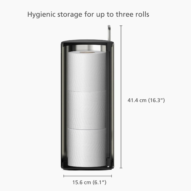 Rymmer upp till tre extra toalettrullar och håller dem dolda.