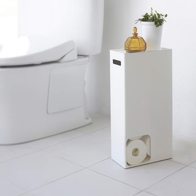 Behållare för toalettpappersrullar i metall, TOWER STOCKER, 23 x 12,5 x H 48 cm, Vit