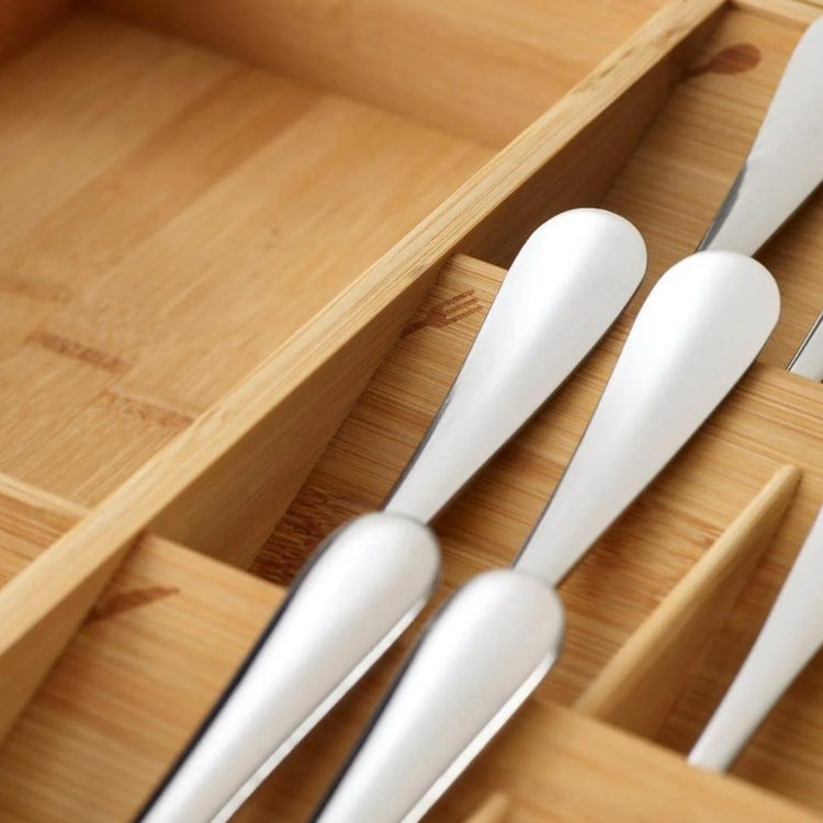 Besticken förvaras i fack ovanpå varandra vilket spar plats.