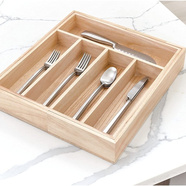 Besticklåda i trä, Expanderbar, PAULOWNIA ECO WOOD, 38 x 34,5~58,5 x H 6,4 cm, Natur