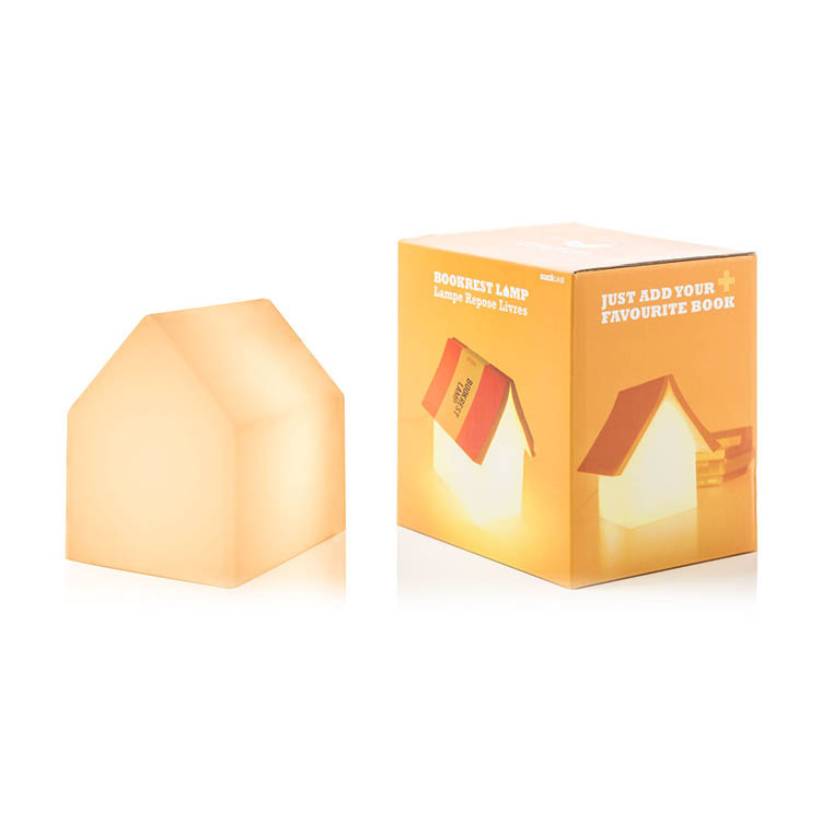 När du placerar din bok ovanpå lampan fungerar den som ett bokstöd – boken blir taket på ett litet hus. Det gör att du slipper leta efter bokmärket eller komma ihåg sidan. En enkel men smart lösning som samtidigt tillför personlighet till rummet.Mjukt ljus för kvällsläsning