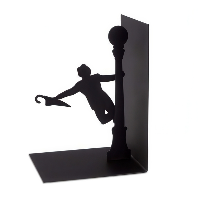 Ett roligt och dekorativt bokstöd i metall i form av en siluett inspirerad av filmen Singing in the rain.