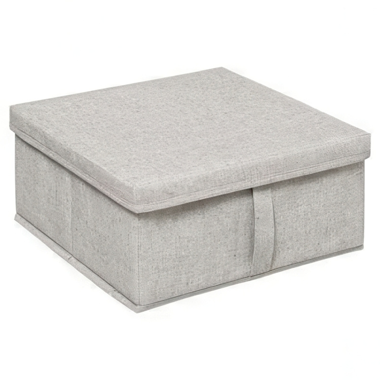 Box i tyg med lock, ORGA STORAGE BOX MEDIUM, 31 x 31 x H 15 cm, Beige-Grå