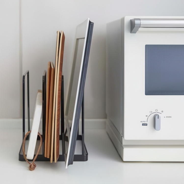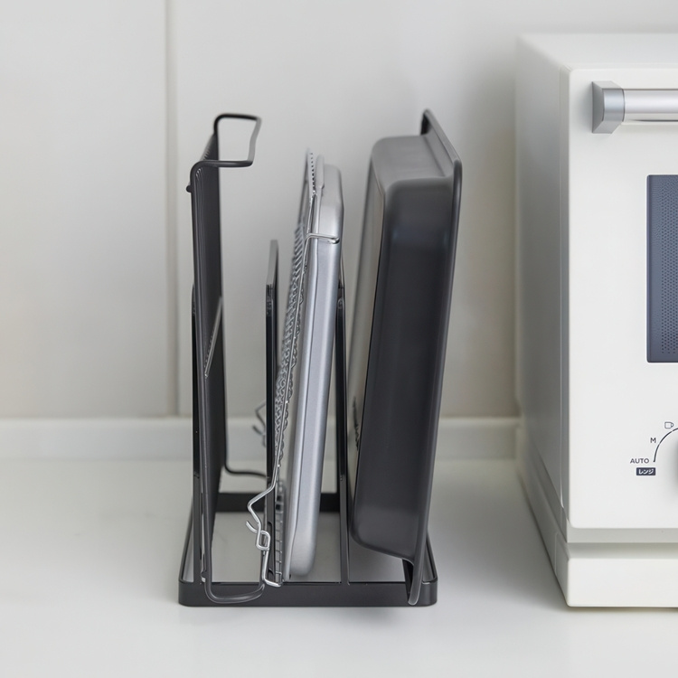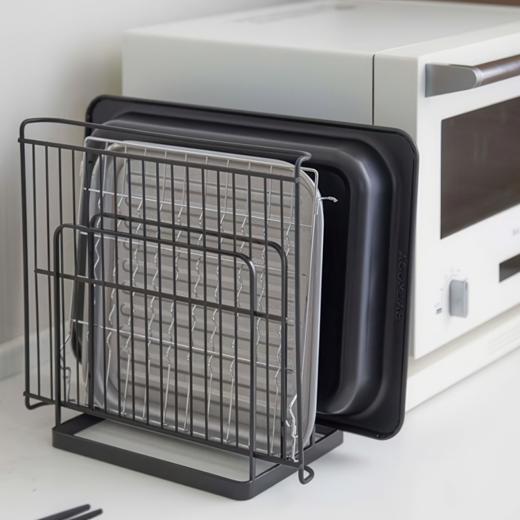 Ett snyggt ställ i metall för tex brickor, plåtar och skärbrädor.