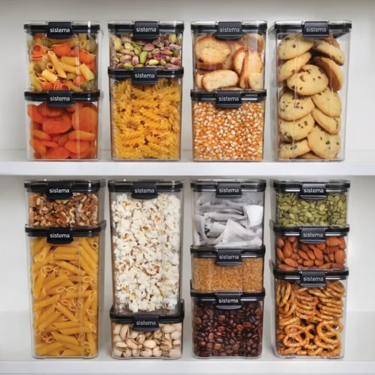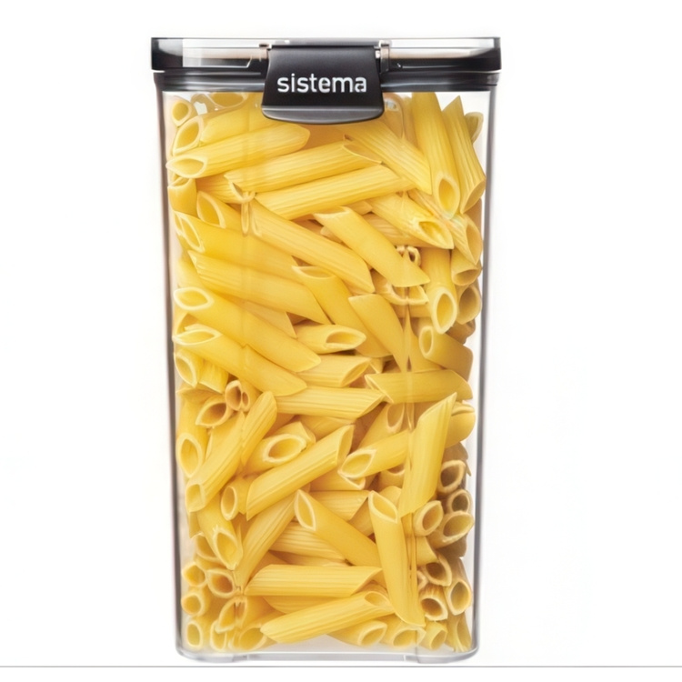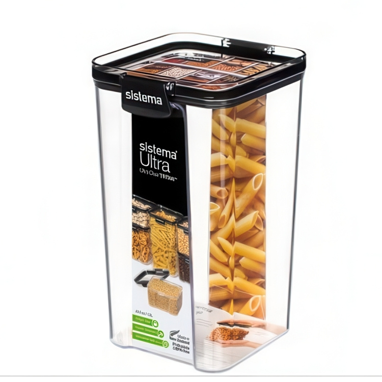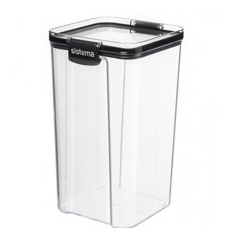 Extra klar, stapelbar och lufttät fyrkantig burk.