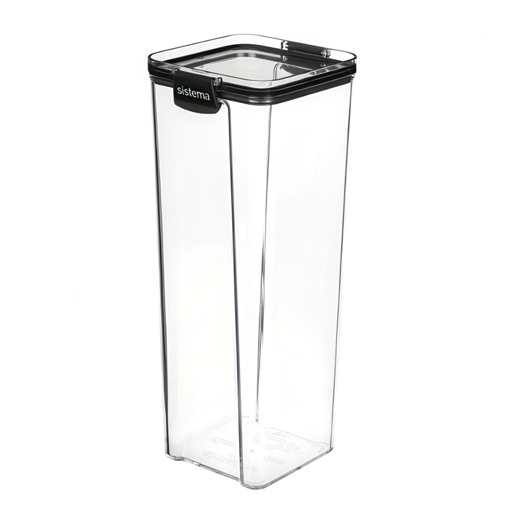 Extra klar, stapelbar, hög och lufttät fyrkantig burk.