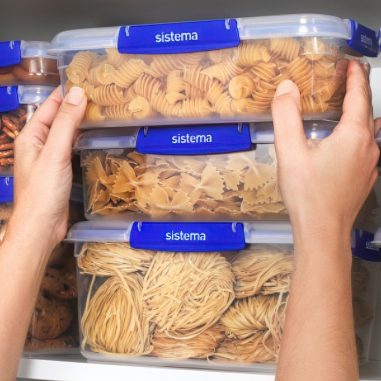 Asken är stapelbar. Sistema Klip It Plus - Lätta att förvara.