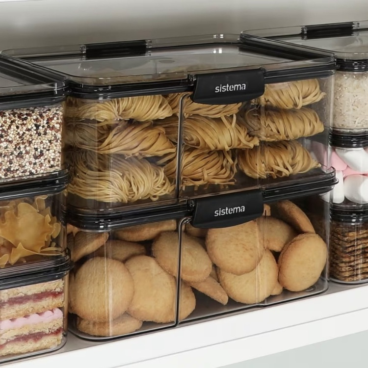 Extra klar, extra stor, stapelbar,greppvänlig och lufttät fyrkantig burk.