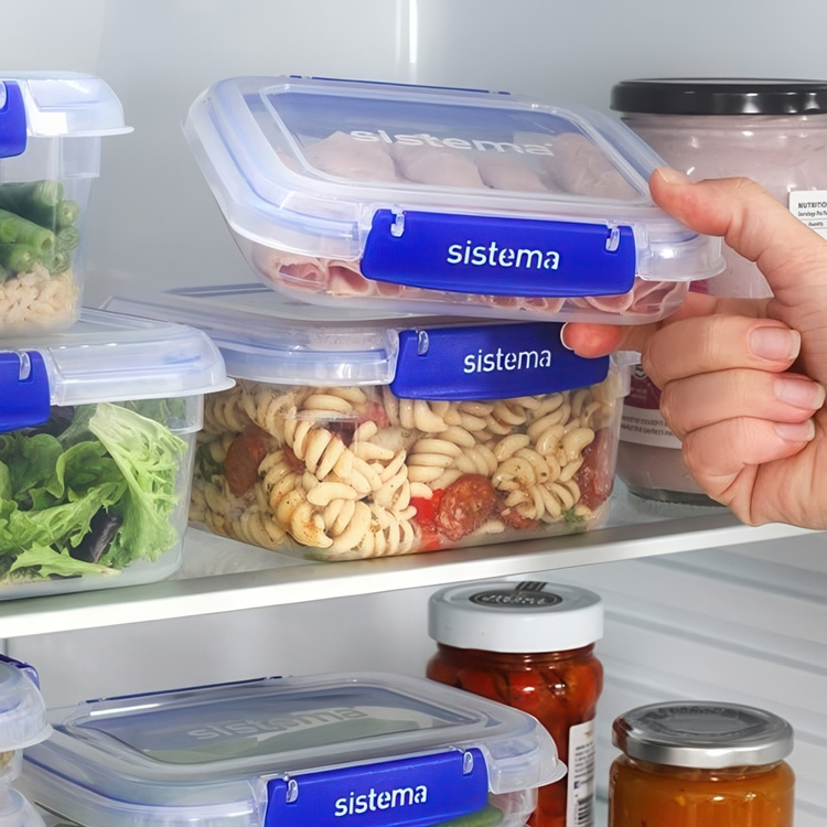 Artnr: 40327 Lagersaldo: 0 Bredd: 13.0 Djup: 18.0 Höjd: 4.0 Material: BPA-fri plast Volym: 936.0 Färg: Transparent med detaljer i blått