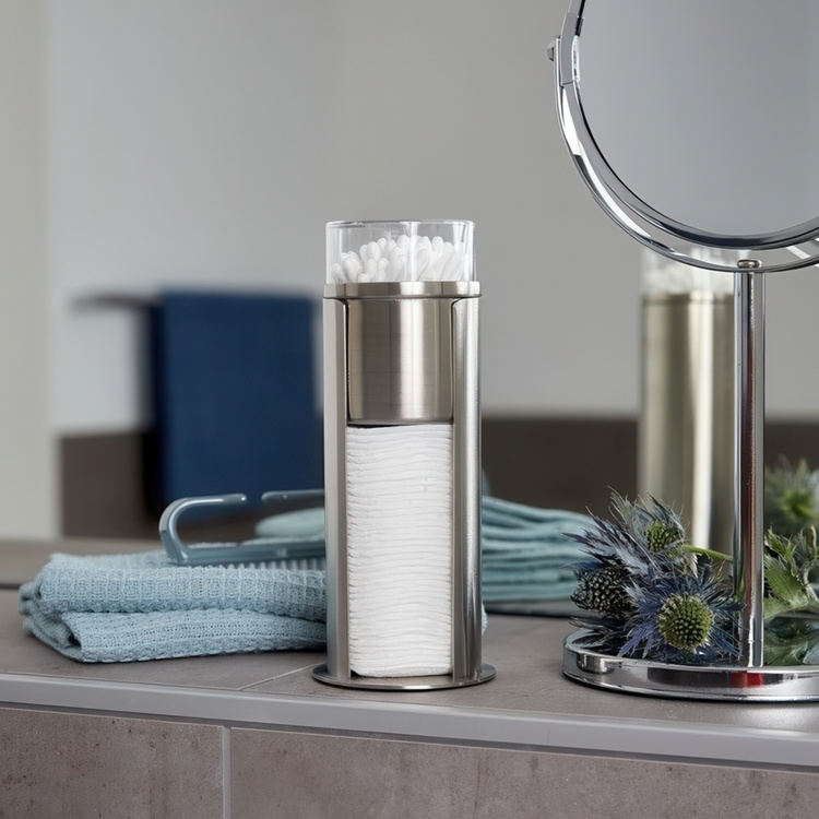 Burk för bomullspads & tops, FIRENZE, Ø 7.5 x H18 cm, Rostfritt Stål/ Klar