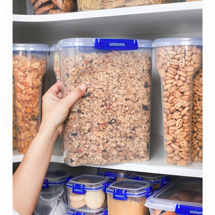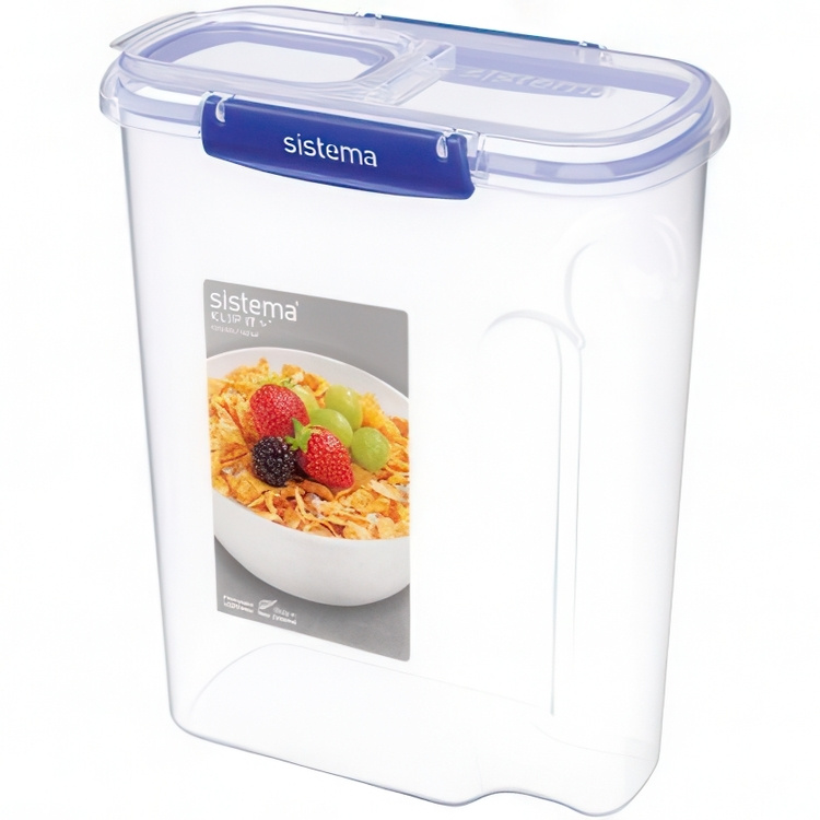 Burk för flingor, Stor, 4,2 L KLIP IT + , CEREAL, Sistema, Klar / Kornblå