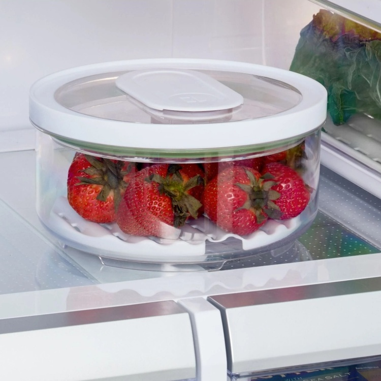 Denna låda är utformad för att hålla frukt och grönt färsk i kylen längre.