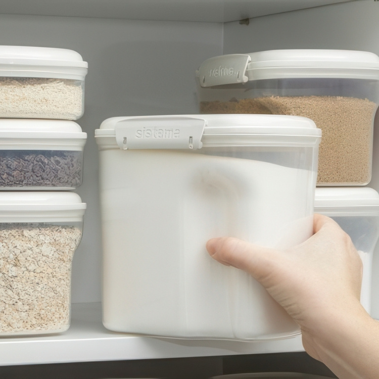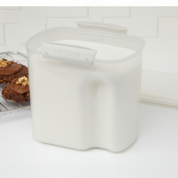 Burk, för mjöl, gryn mm, 2,4 L, Med skopa, BAKE IT, Transparent / Vit