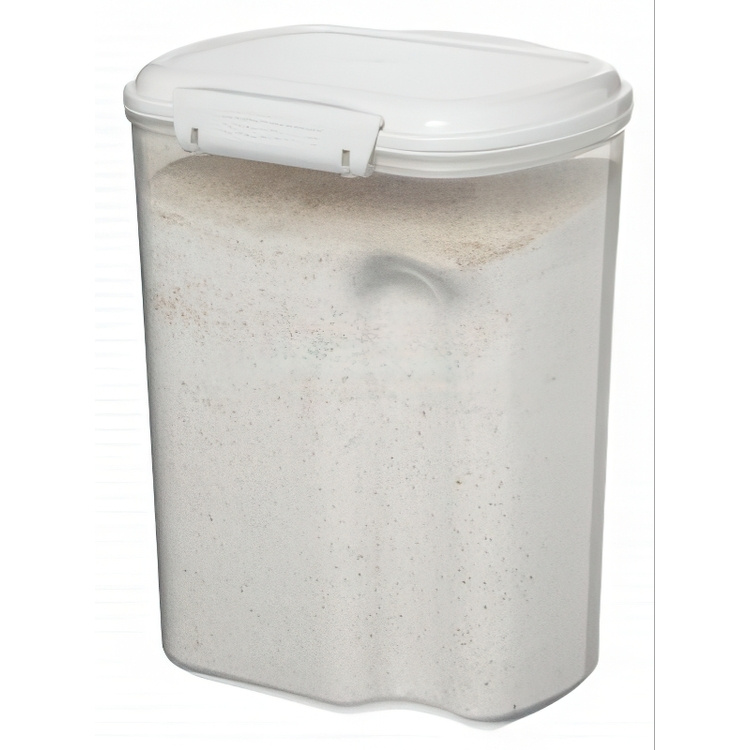 En burk designad med tanke på praktisk förvaring av mjöl, gryn och andra ingredienser för bakning.