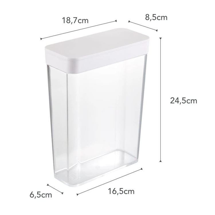 Burk för torrvaror, Lufttät, 2,3L, TOWER FOOD CONTAINER, 19 x 8,5 x H 24,5 cm, Yamazaki, Klar / Vit
