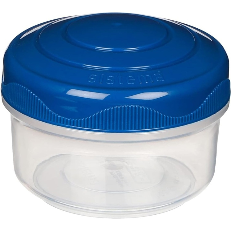 Artnr: 40336 Lagersaldo: 0 Diameter: 7 Höjd: 5.0 Material: BPA-fri plast Färg: Klar med lock i mint och blått.