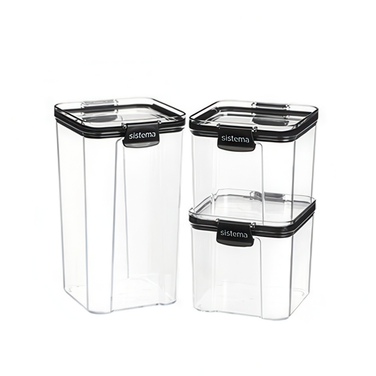 Burkar för torrförvaring, 3-pack, SISTEMA TRITAN ULTRA SPECIAL, Klar / Svart