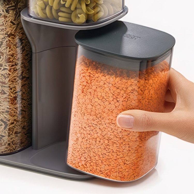 Burkar i smart ställ, 3 st, PODIUM EASY-ACCESS, Joseph Joseph, Klar / Grå