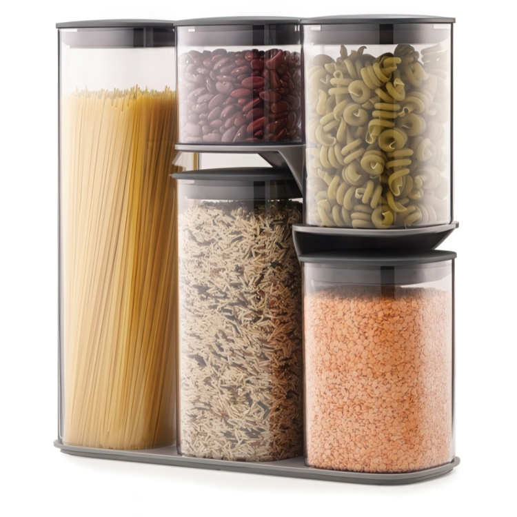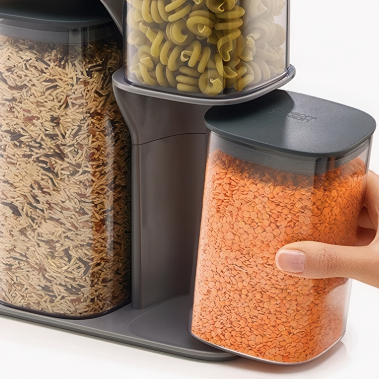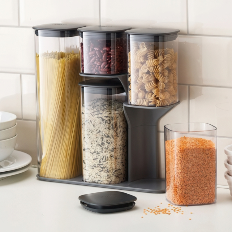 Burkar i smart ställ, 5 st, PODIUM EASY-ACCESS, Joseph Joseph, Klar / Grå