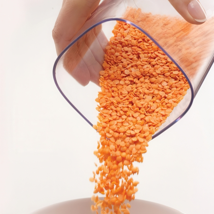 Burkarna står i ett smart stativ som ger enkel åtkomst till alla burkarna oavsett position.