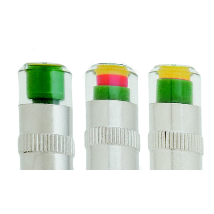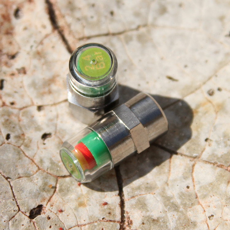 Med den här lilla hatten på bildäckets ventil håller du koll på att trycket inte sjunker allt för mycket utan att behöva besöka bensinstationens avdelning för däckpumpning. Skruva på manicken på ventilen och den identifierar det tryck ditt bildäck då har som normaltryck och indikerar det som grönt. Sjunker tycket lite indikeras det som gult och skulle det bli mycket visar ventilen rött. Enkelt och smart!!
