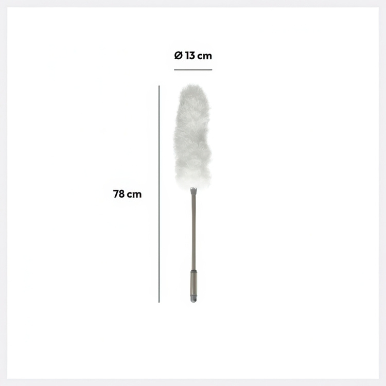 En stilig dammvippa i rostfritt stål och microfiber.