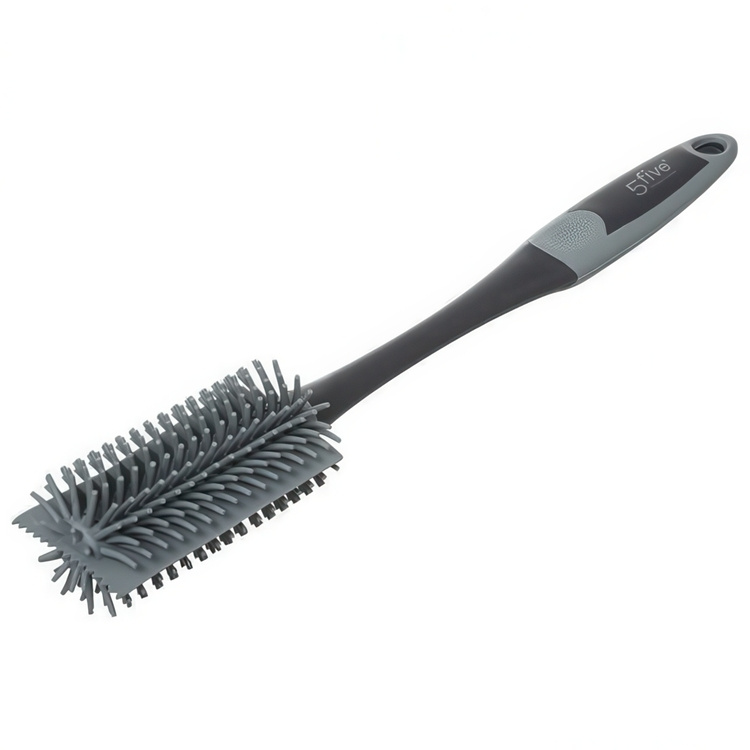 Nertill har borsten en tandad gummiskrapa som kan användas för att skrapa bort matrester som fastnat. -