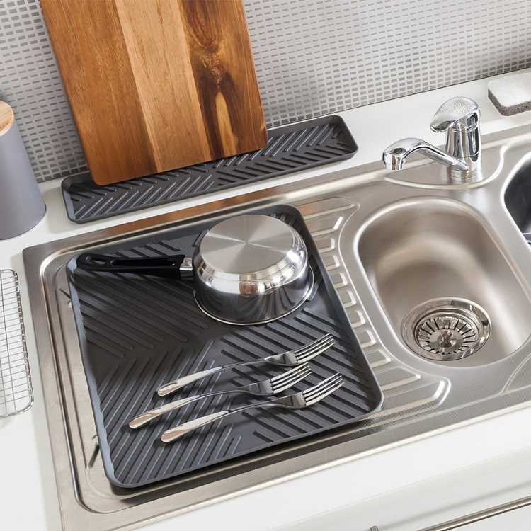 Diskmatta, med kanter, SQUARE DRAINING MAT 30,5 x 30.5 cm, Mörkgrå