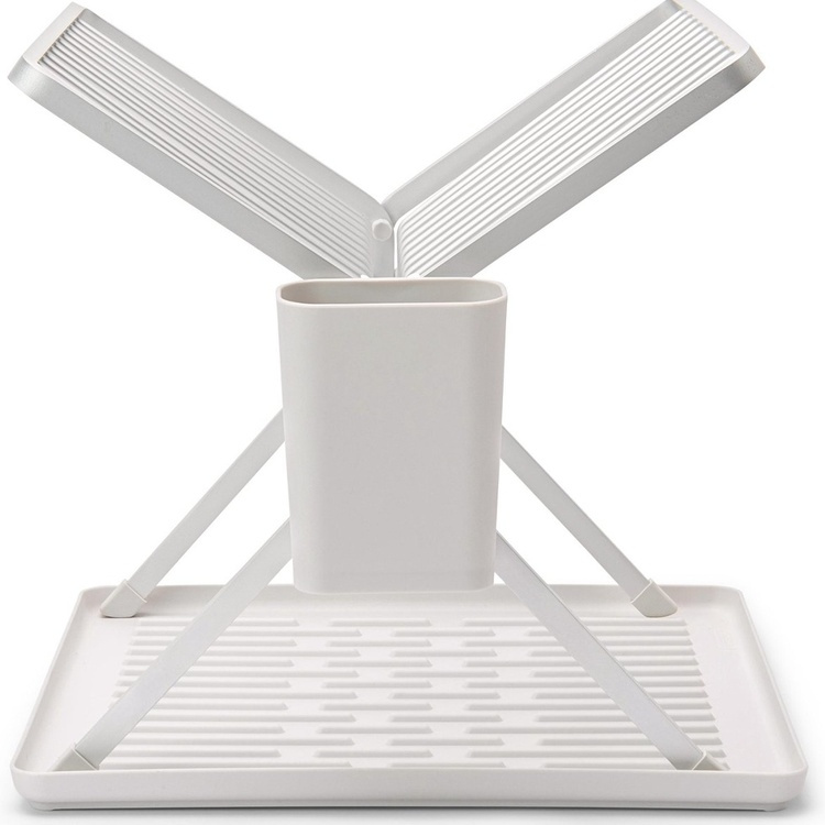 Korgen för torkning av bestick och redskap är löstagbar, vilket gör det enkelt att fälla ihop stativet och ställa undan det.