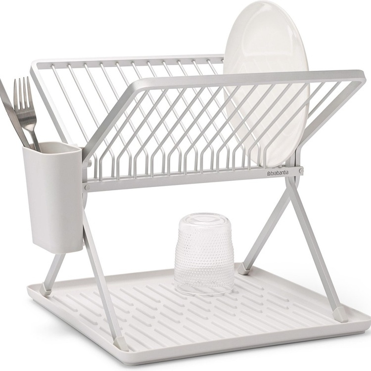 Ett litet hopfällbart diskställ med droppbricka från Brabantia.