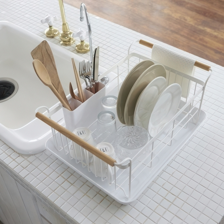 Diskställ med bricka, TOSCA DISH DRAINER, 47 x 33,5 x H 20 cm, Yamazaki, Vit