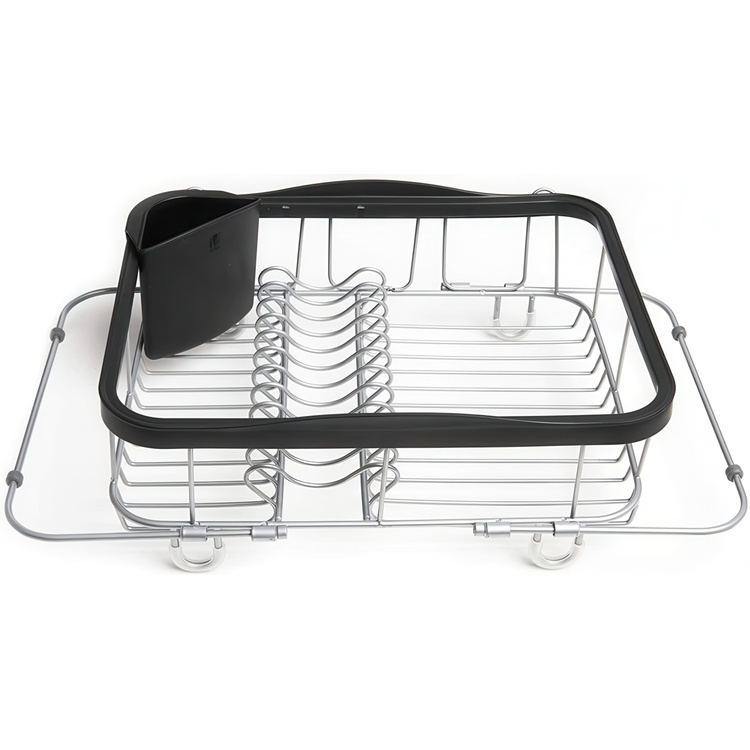 Det här lilla diskstället har utdragbara skenor som gör att du kan hänga det över diskhon.