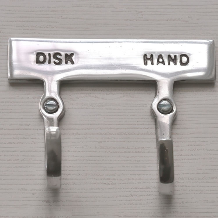 Dubbel krok med skylt, DISK & HAND, Exmez, Sandgjuten aluminium