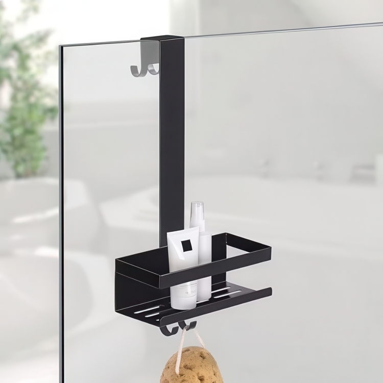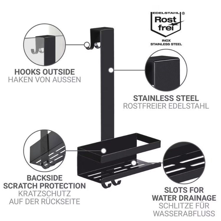 Duschkorg i metall, Över Duschvägg, BRIBANO UNO CADDY, Svart