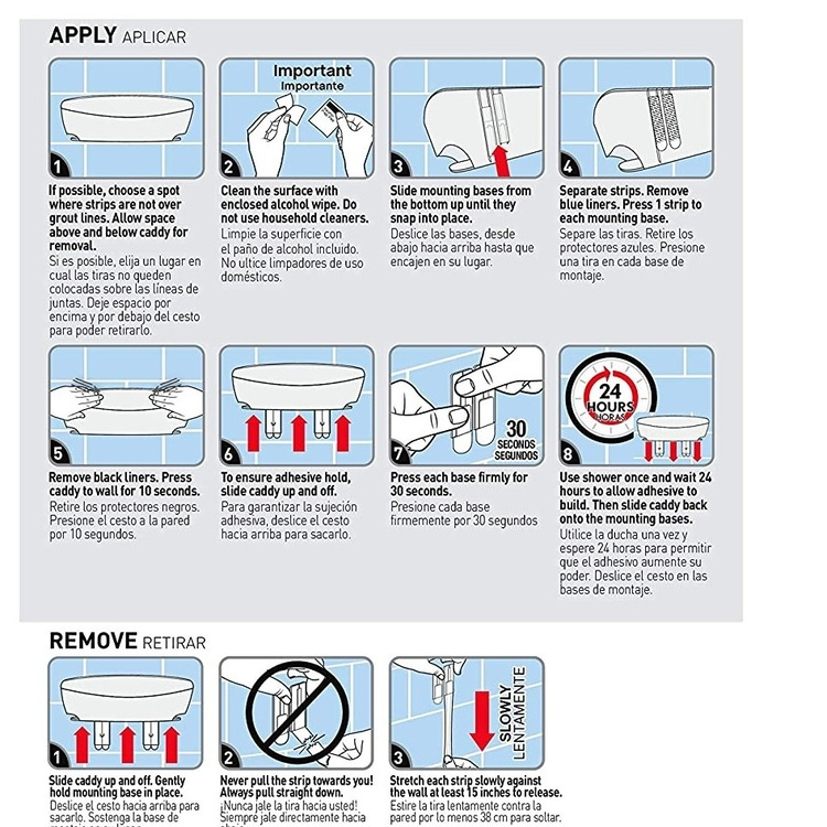 De självhäftande remsorna kan appliceras på släta ytor som kakel speglar etc.