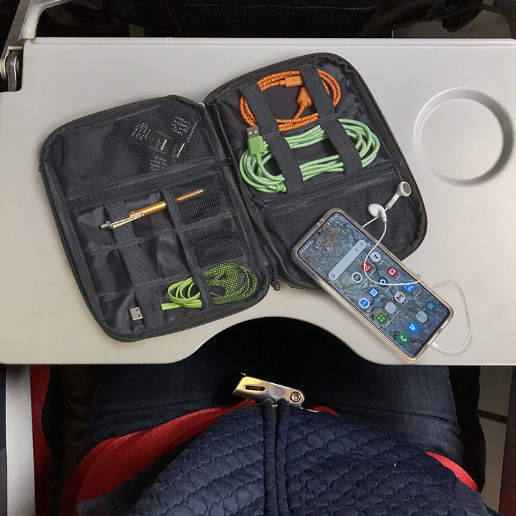 För att du snabbt ska hitta rätt sladd utan att de trasslar ihop sig har organiseraren sju elastiska band där kablarna kan hållas ordentligt på plats. Det är ett smart system som ger överblick och sparar utrymme.Kompakt men rymlig