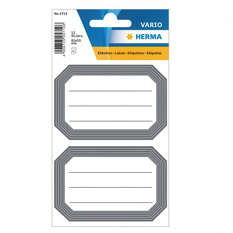 De här etiketter är gjorda av högkvalitativt vitt papper med en diskret grå ram -