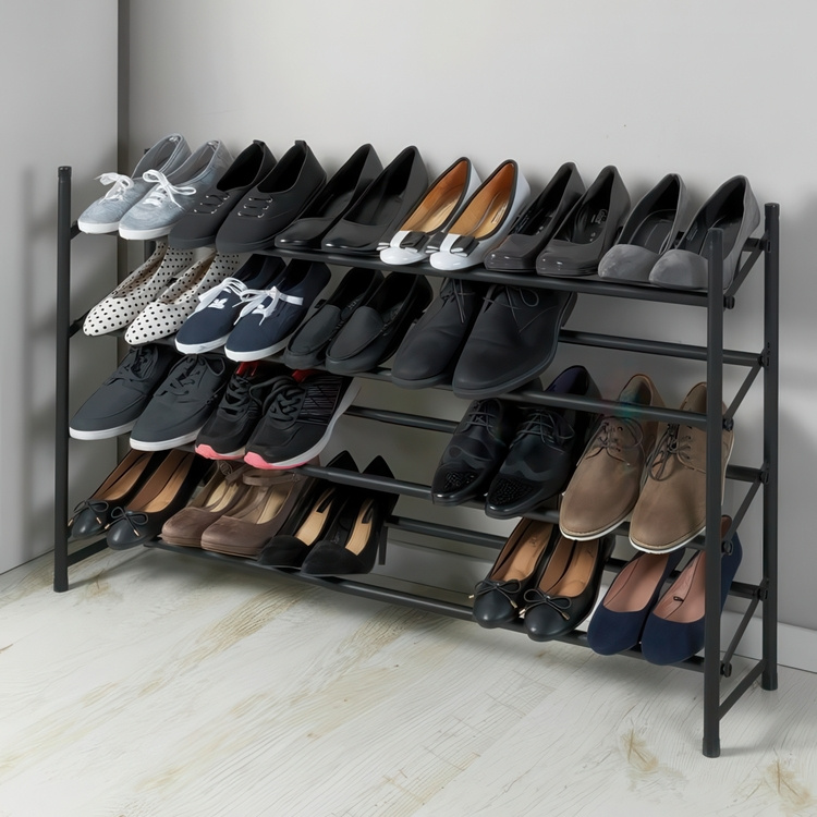 Expanderbar skohylla, 4 hyllor, HERO NON-SLIP, 62~115 x 23 x H 68 cm, Svart