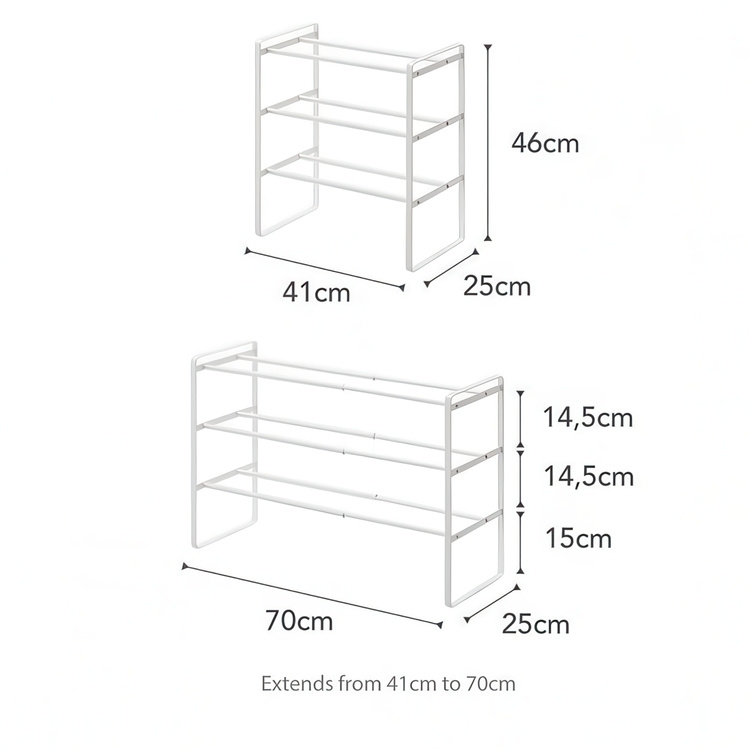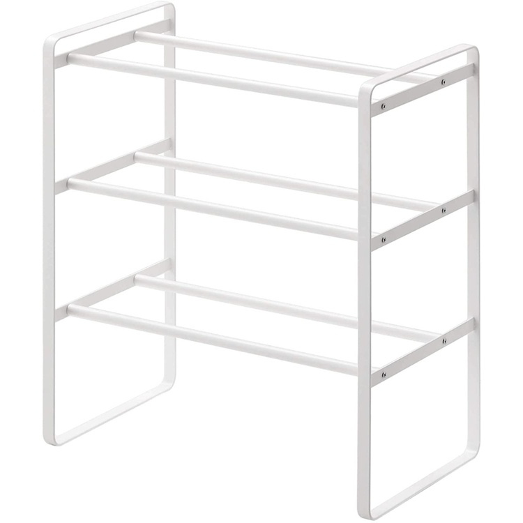 Expanderbar skohylla i metall, Stapelbar, FRAME 3-TIERED, 41-70 x 25 x H 46 cm, Yamazaki, Vit