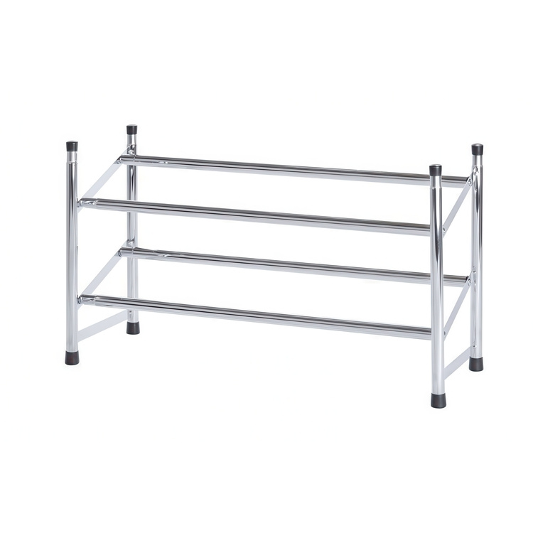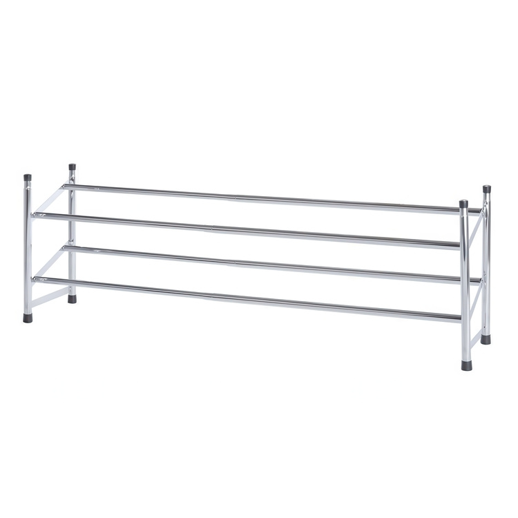 Expanderbar skohylla i metall med plats för ca 10 par skor.