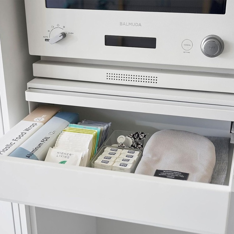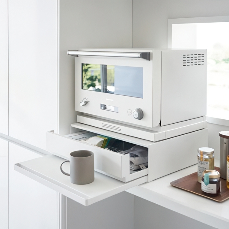 Placera t ex en mikrovågsugn ovanpå lådan. Förvara diverse saker i lådan och använd den utdragbara hyllan som extra arbetsyta.